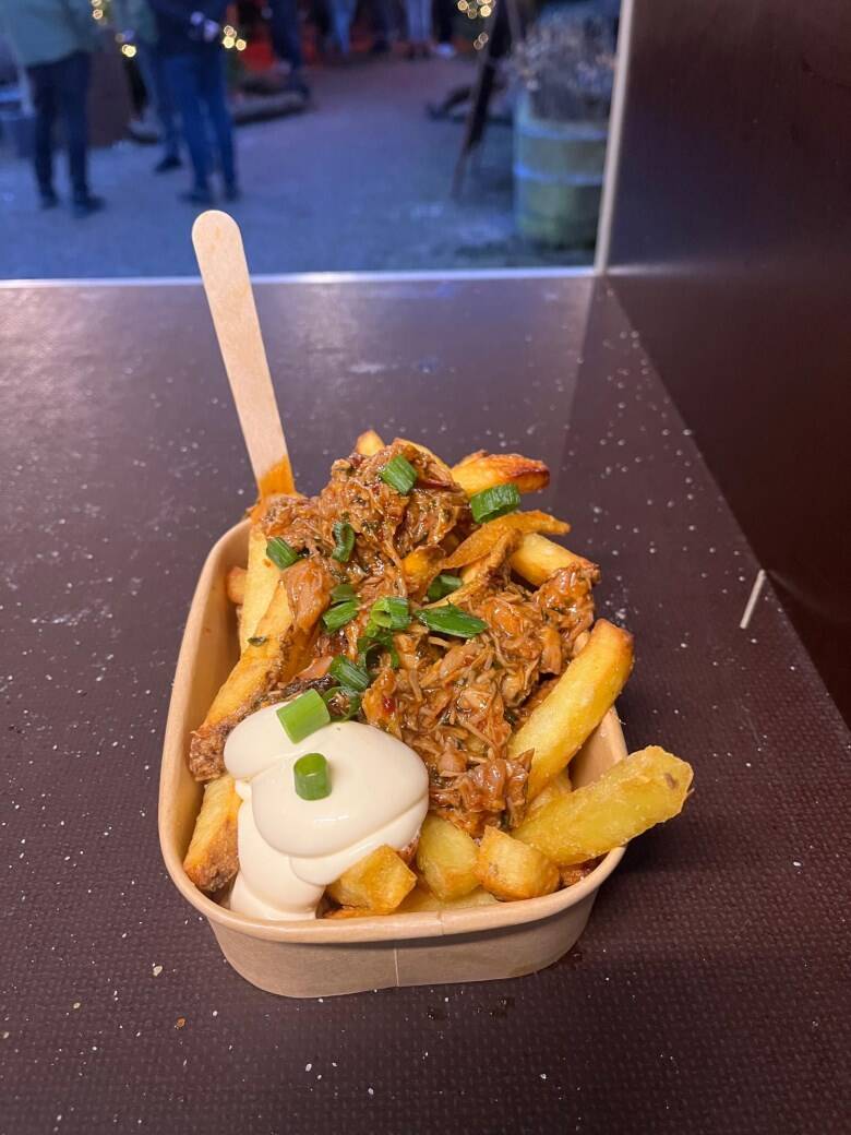 - Friet pulled chicken met bbqsaus, kaas en onbeperkt snacks en saus